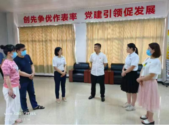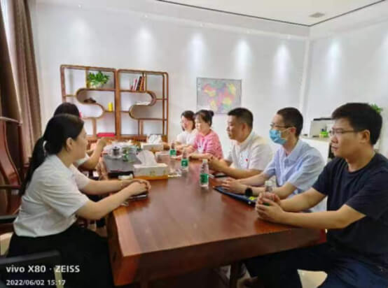 6月2日,信豐縣人民醫(yī)院第四支部書記鐘雷、耳鼻喉科主任羅金橋、院感科主任曹莉、耳鼻喉科護(hù)士長(zhǎng)馮玉玲、四支部組織委員郭榮盛一行來到朝陽聚聲泰開展醫(yī)企對(duì)接交流,就“優(yōu)化營(yíng)商環(huán)境,做實(shí)健康服務(wù)”主題與我公司支部組織委員黃麗麗深入交流。
