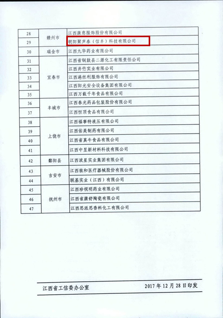 • 聚聲泰被認定為2017年全省專業(yè)化小巨人企業(yè)