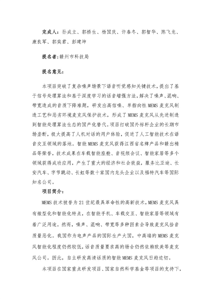 • “面向話音增強(qiáng)的智能 MEMS 麥克風(fēng)關(guān)鍵技術(shù)研究及應(yīng)用”的公示